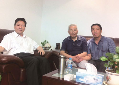 原中國大學(xué)校長,現(xiàn)中國銀行副行長陳雨露(左一)及父親陳輝(原藁城市人大副主任)(左二),與我公司董事長張風(fēng)軍(右一)親切交流。